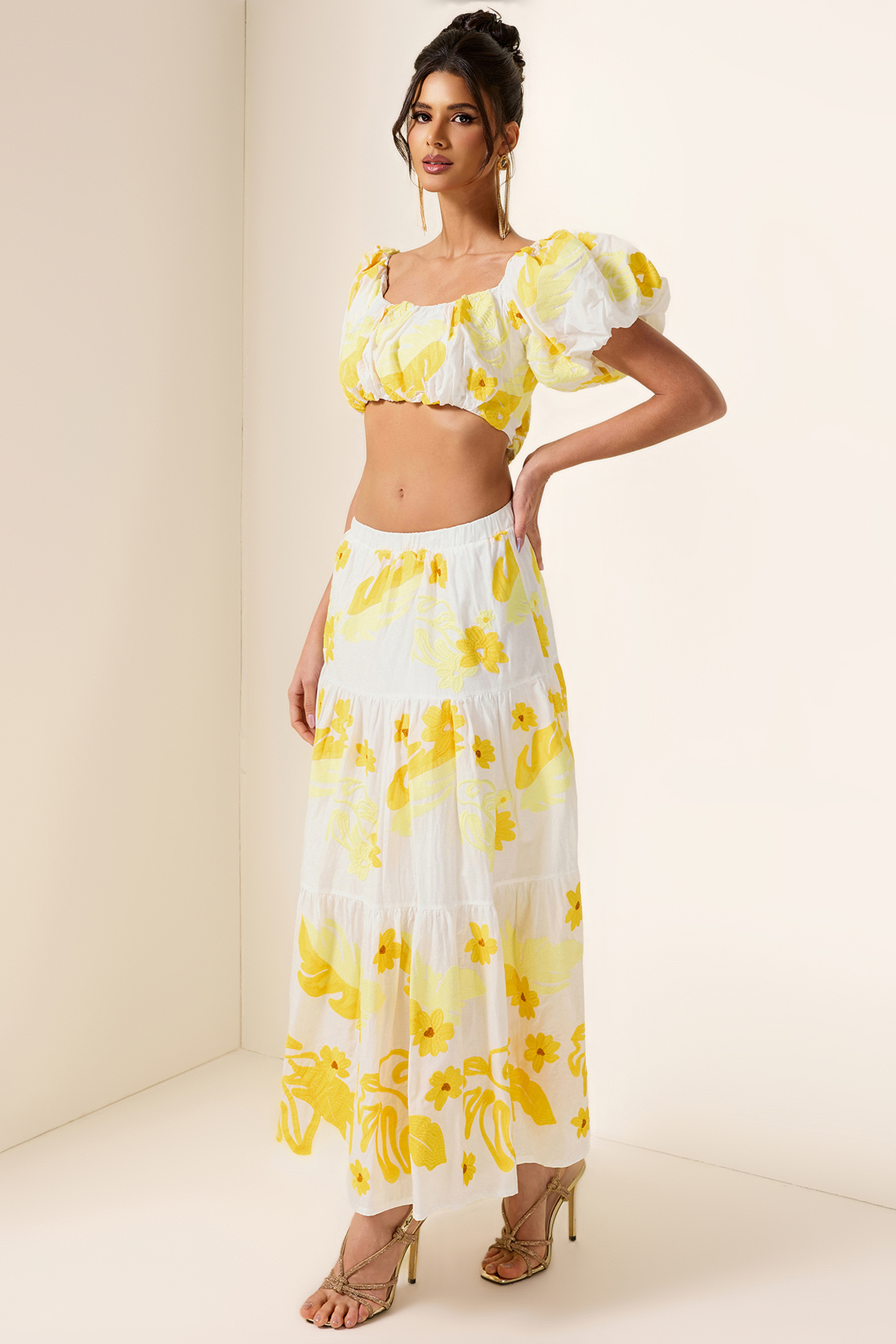Embroidery Off-Shoulder Top & High Waist Midi Skirt Set