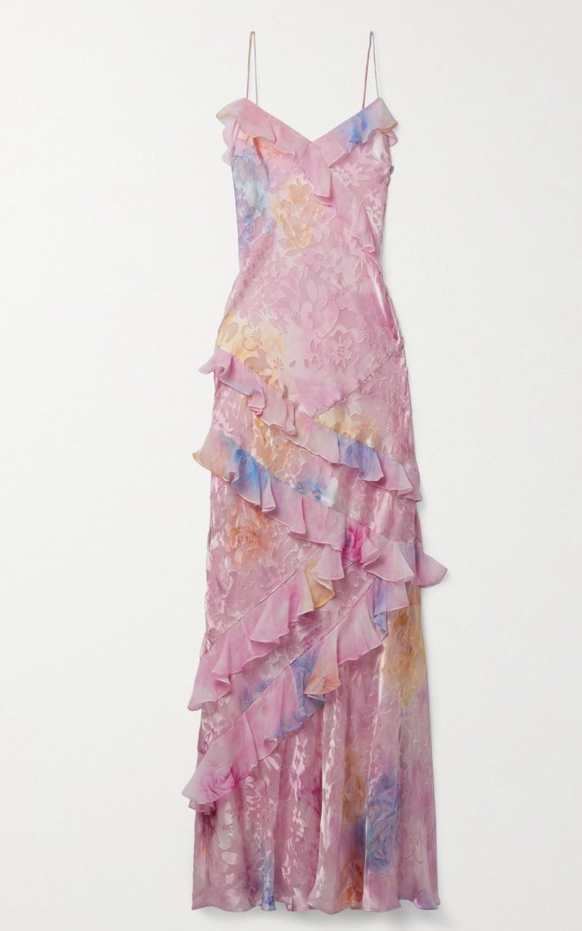 - Frill. sweetheart neck. sleeveless. backless. tiered ruffle hem