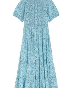 Tags: 0930E, 202404, 20240422, Blue, date, Dress, E, floral printed, midi dress, Puff Sleeve, short sleeve, single-breasted, spring, summer, Vacation