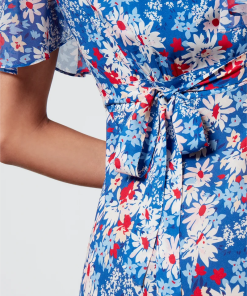 - V-neck. floral prints. lace-up. short sleeve. midi dress