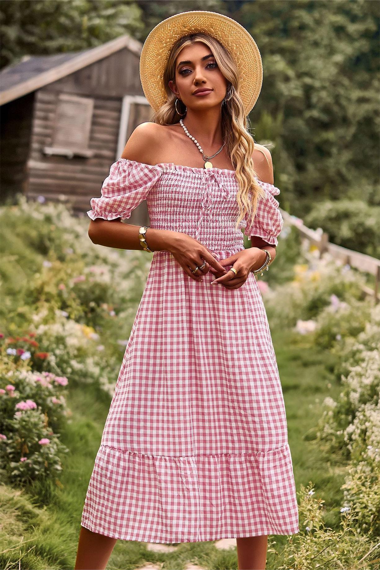 Be the first to review “Plaid Square Collar Short Sleeve Midi Dress” Cancel reply