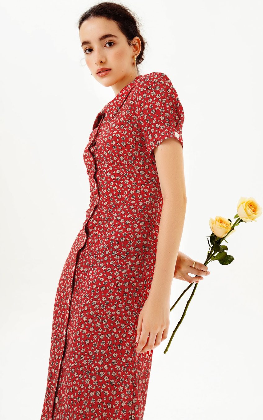 - Puff sleeve. lapel collar. buttoned. drapped hem