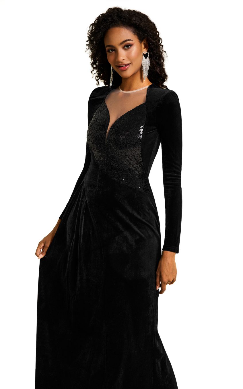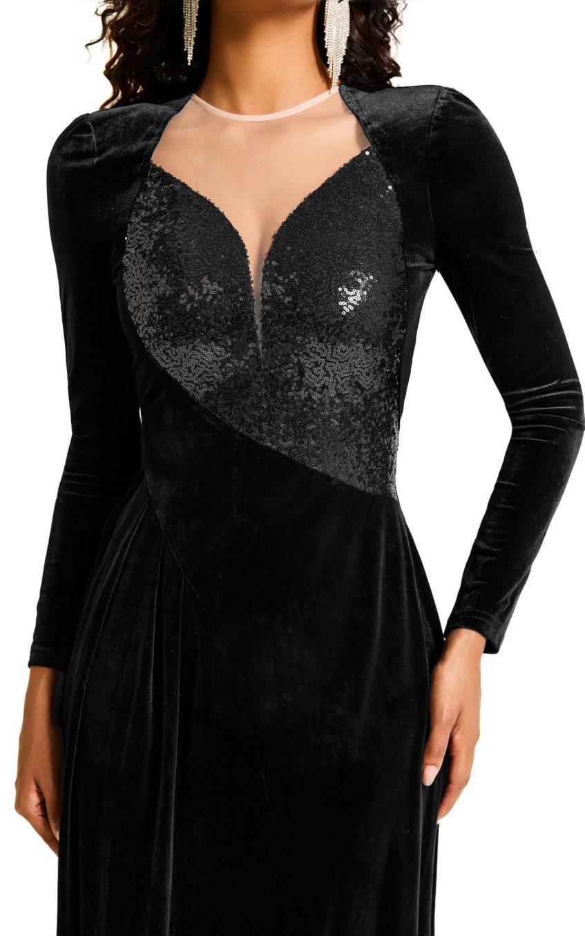 - Sequin. splicing. long sleev. solid color
