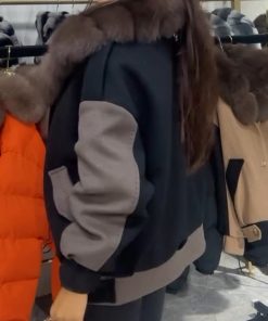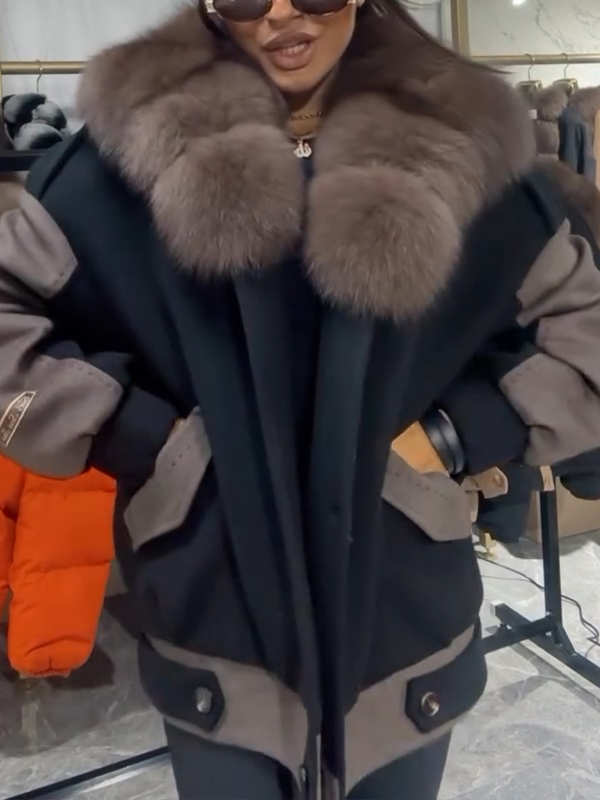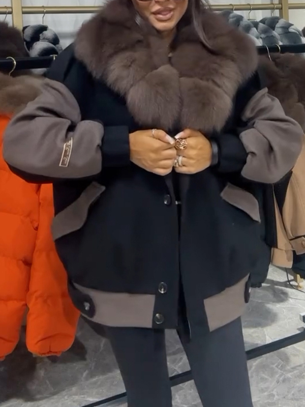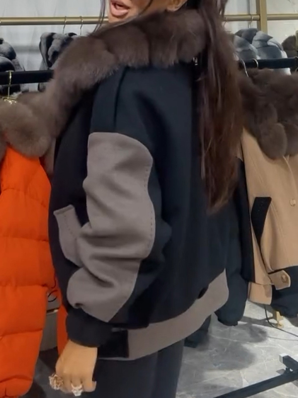 Women Fur Collar Contrasting Casual Cotton Jacket