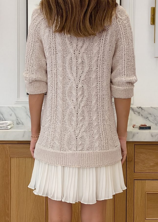 Women Round Neck Sweater Spliced ​​casual Dress