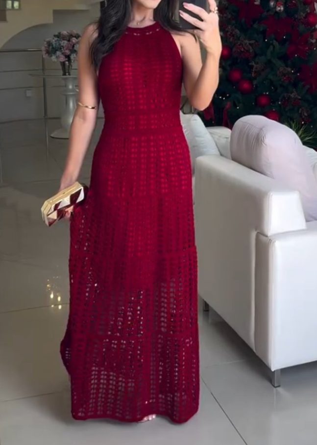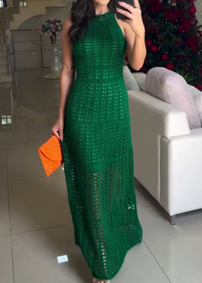 Women’s Elegant Halter Neck Hollow Knitted Resort Dress